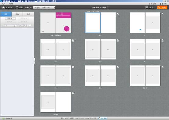 选择左侧或者制作区的印品(以画册为例),双击即可进入模版选择页面。